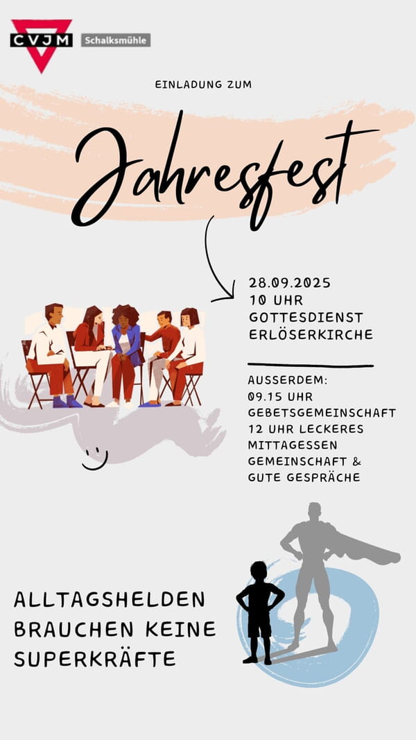 Wir laden herzlich ein zu unserem diesjährigen CVJM Jahresfest am 28. September in der Erlöserkirche.