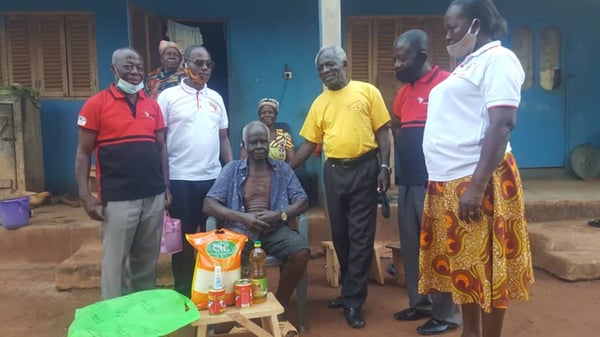Nahrungsmittelspenden an ältere Mitglieder des YMCA Konongo