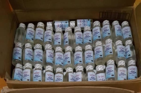 Masken und Desinfektionsmittel für die Bewohner Konongos
